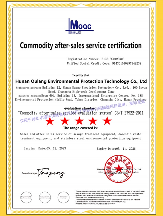 Commodity after-sales service certification